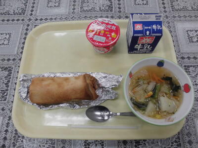 ホットロールパン じゃがいも入り野菜スープ 牛乳 ヨーグルト