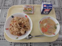 12月4日 今日の給食は「チキンと野菜の甘辛丼」です