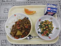 今日は大人気のカレーです。ポークカレーで、豚肉たっぷりでした。豚肉には