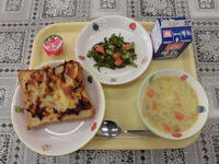 2月1日 2月最初の給食は「小松菜のピザトースト」です