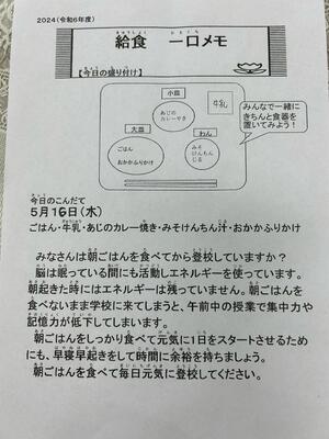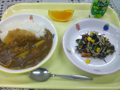今日は、明日の運動会への応援の気持ちを込めて、「カツ(勝つ)カレー」が登場です。