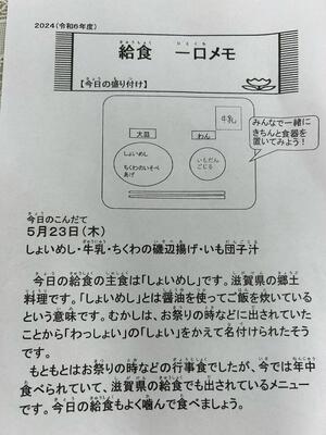 今日は滋賀県の郷土料理「しょいめし」です。出汁がしっかり効いていました。