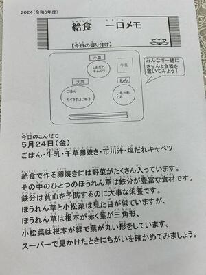 湿度が高くなってきましたが、バランスの良い給食で、元気に過ごせます。