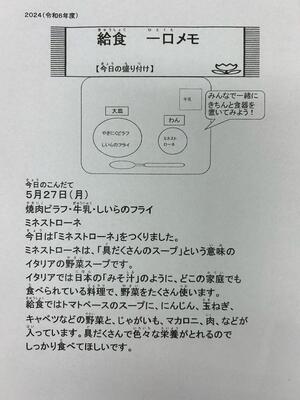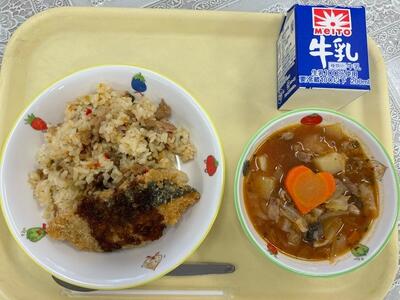 焼肉ピラフ・牛乳・しいらのフライ・ミネストローネ