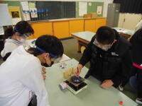 同じく3年生 こちらのクラスは理科で 電流の流れる仕組みを学習していました。電流が流れて、灯がつく懐中電灯を