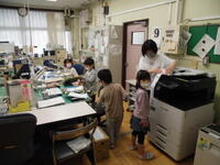 国語 大型提示装置と拡大したプリント両方を使いながら、 算数 学級を半分に分けて。、少人数学級で指導しています。