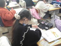 分数の学習です。ペア同士で自分の考えを発表しあって