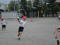 梅雨の合間をぬって、2年生が外で体育を行っていました。
