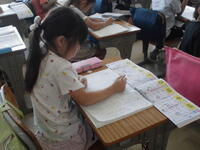 どうやら次の時間は書写(毛筆)のようです。どの子の机の上にもきちんと準備がなされていました。