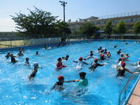 2年生は初めての「水遊び」(プール)でした。2年生は4クラスなので、コロナ感染対策で2学級ずつの実施です。