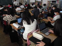 1年生  先日紹介したクラスとは別のクラスがタブレットを活用していました。まだ、ログインするまでに時間がかかります。