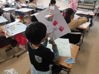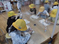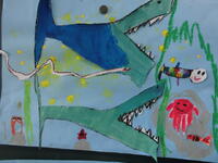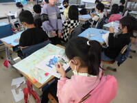水の中の生き物をたくさん作って、貼り付けます。迫力ある作品にしあげているこもいます。