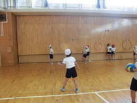 こちらも 3年生  体育館でボール運動をしていました。横に投げる  上にほうる  下から転がす。