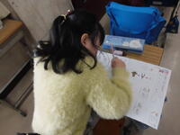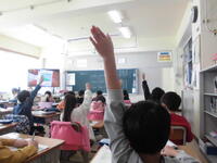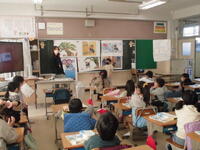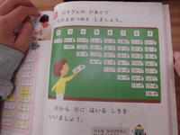 こちらのクラスは算数です。みんな引き算の決まり見つけたかな?  こちらのクラスは、国語、挿絵を見ながら、お話の順番を考えます」