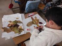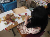 生活科 色づいた落ち葉を集めて、絵を作成します。微妙な色合いの変化が楽しいです。