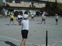 4年生は、先日マリーンズの方たちに教わったベースボール型の授業にとりくんでいました。