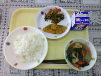 鱈のフルーツレモンみぞれあん 小松菜のじゃこ炒め ひっつみ ごはん 牛乳