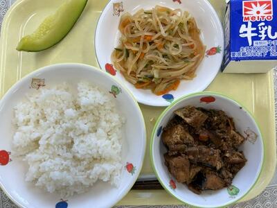 ごはん・牛乳・なすと生揚げのマーボー炒め・中華和え・メロン