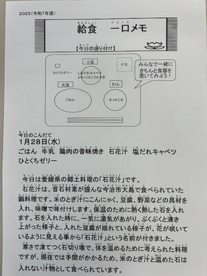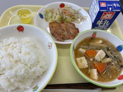 ごはん・牛乳・鶏肉の香味焼き・石花汁・塩だれキャベツ・ひとくちゼリー