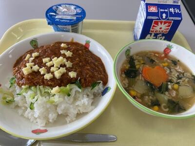 ごはん・牛乳・タコライスの具・ABCスープ・ヨーグルト