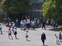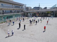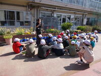 あたたかな日差しの中...子どもたちと先生方のふれ合い、いいですね。