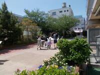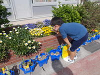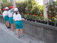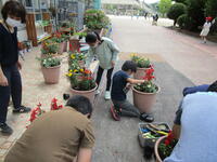職員玄関前が華やかになりました。お手伝い、ありがとう!