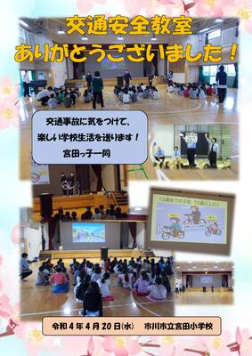 みんな、交通事故等に気を付けて、楽しい学校生活を送ろうね。