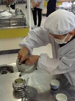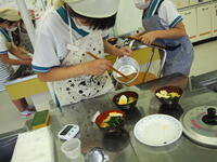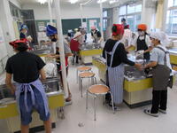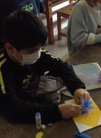 感染防止対策のため、学級を家庭科と図工2グループ分けての活動です。