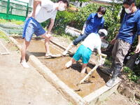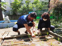 リニューアル中の「憩いの場」の様子を見に来て、新たな器具を取り付けに来てくれた地域の方にも感謝です。