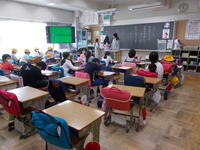 本日は、1年生は3校時日課、2~6年生は平常日課、初めての宮田っ子全員登校。
