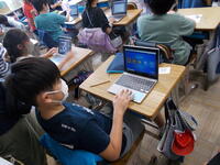 5年生はICT支援員さんによる「ミライシード」の授業です。