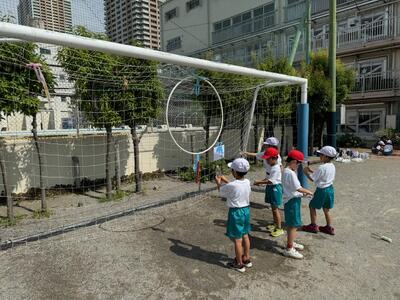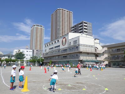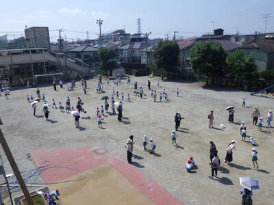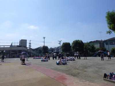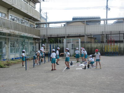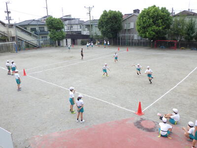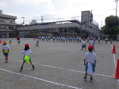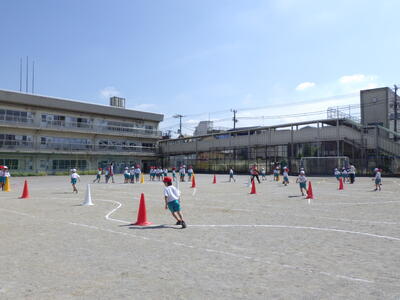 暑さ指数を確認し、熱中症に気をつけての体育!