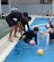 日本代表の皆様は、子どもたちが水球に親しむことができるようなプログラムを考えてくださいました!