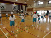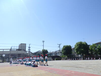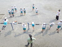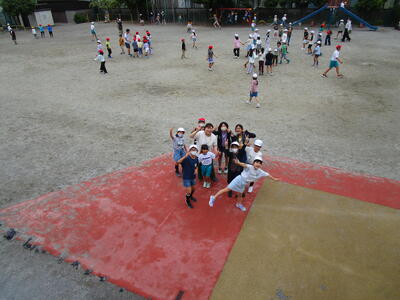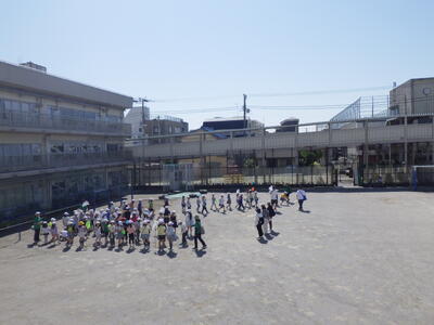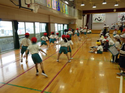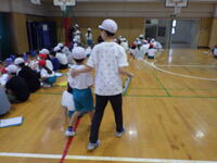 みんなで「じゃんけん列車」で楽しんでいる1年生!
