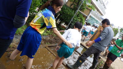 なので、来週の「田植え」に備えて、昨日教職員で「田おこし」を!