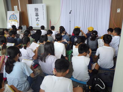 寄贈された方をはじめとするご来賓の皆様による序幕!そして大きな拍手!!写真では一部しか見えていませんが、奥の壁一面がすばらしい年表となっていました(@_@)