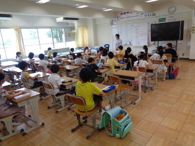 1学期最後の日...講堂には5・6年生が集合!