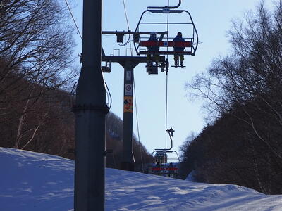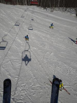 多くのグループが高速リフトに乗り、ロングコースを滑っています!