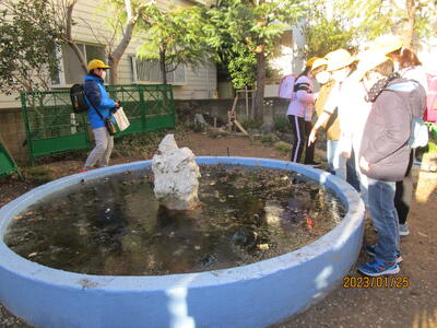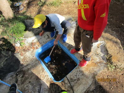 でも宮田っ子たちは憩いの場(仮)の池の氷をツンツン!