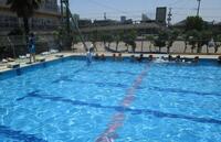 プールサイドの掃除をしてくれている運動委員会のみんな!