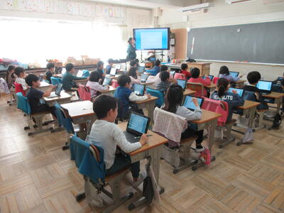 おっ!教室をのぞいてみると、タブレットでアンケートに回答する姿...すごい(@_@)