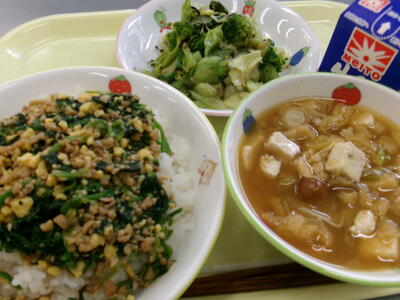 ご飯 ホイコーロー 中華スープ キウイ 牛乳