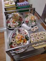 栄養教諭がフルーツに細工を入れ、特製デザートを作りました。