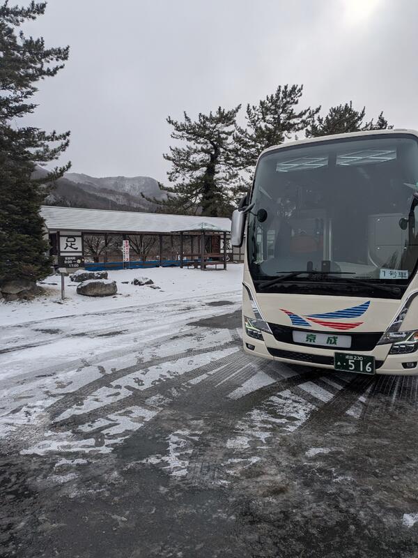 道の駅みなかみに着きました。雪景色となり、子供たちも大喜びです!