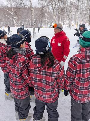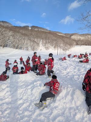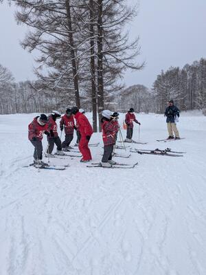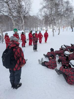 1日目のスキースクールが無事に終わりました。グループごとに基本を練習したり、コースを滑ったり、頑張っていました。また、スクール後、みんなで雪遊びをしました。きれいに雪が積もった斜面に子供たちは目を輝かせて飛び込んでいきました!