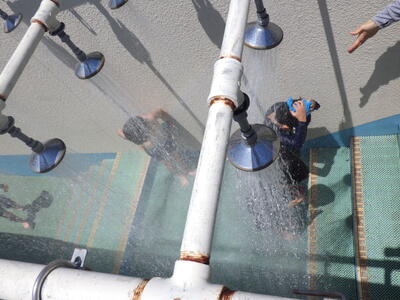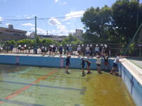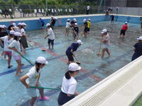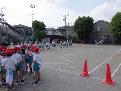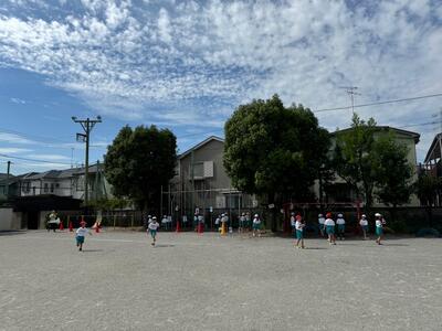 暑さ指数を確認し、熱中症に気をつけての体育!
