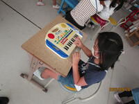 子どもたちは、先生の指示で、廊下側・ベランダ側の窓、扉を施錠し、机やいすでバリゲードを作りました。