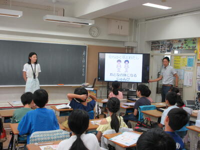 4年生の保健の授業では、市内の他の学校の先生が宮田っ子のだめに授業を!