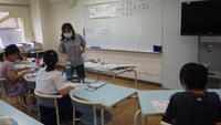 図工の教材の説明をしっかり聞いている3年生