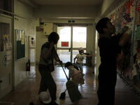 給食室では厳しい暑さと少数精鋭体制の中、